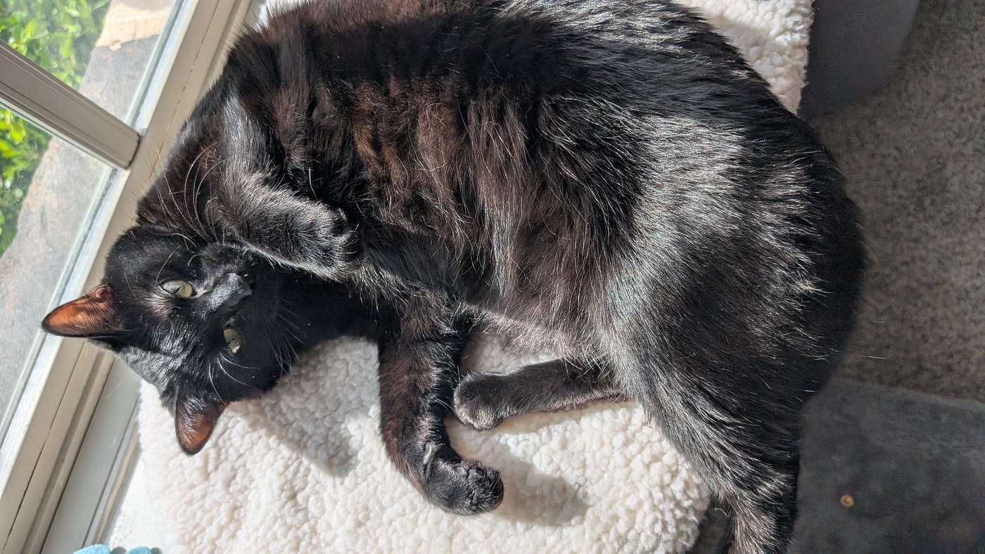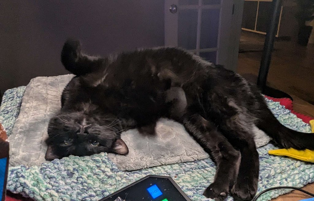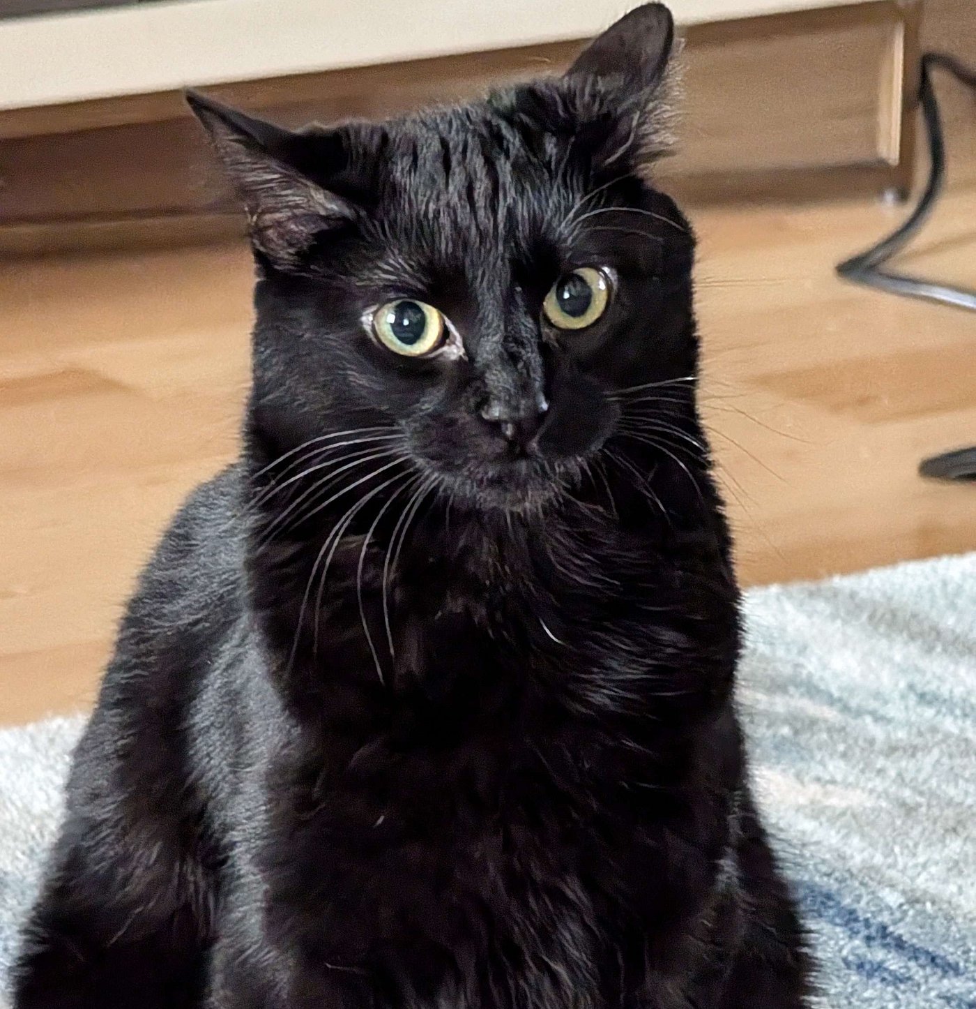 Miss Ellie (full name Eclipse) the internet sensation is the best bug hunter and wall climber around. However, if you ring the doorbell, touch a vacuum, or walk too loudly she will run for the hills, she might even poof that shiny tail! Like Whiz she was adopted by the man of the house off Craigslist - don't worry they have been taken good care of from the vet and it's not as sketchy as it sounds!! She is the kitten at one year old and got her name from the lunar ellipse that took place the day she was adopted. You'll see her in the stream room getting treats from chat and being cozy on the heat pad. She often lurks behind me while I cook, but never gets on the counters when I am looking...she knows better. ;) She is the softest cat I have ever had and loves attention just on her terms. If you see her in chat use those channel points to give her a treat :3 Ellie thanks you in advance.
