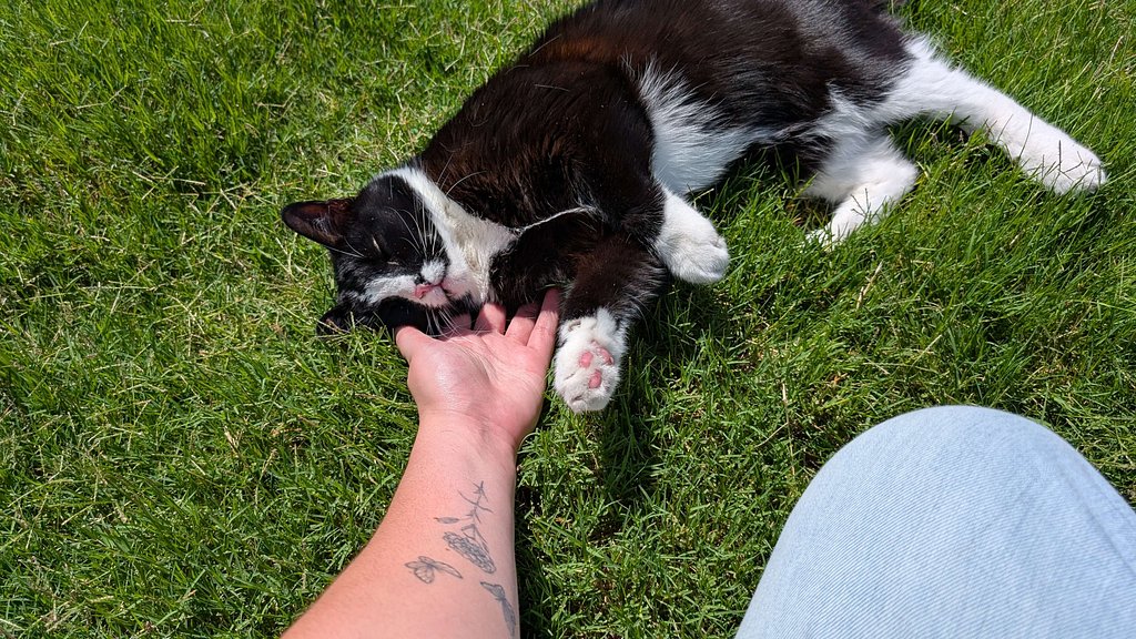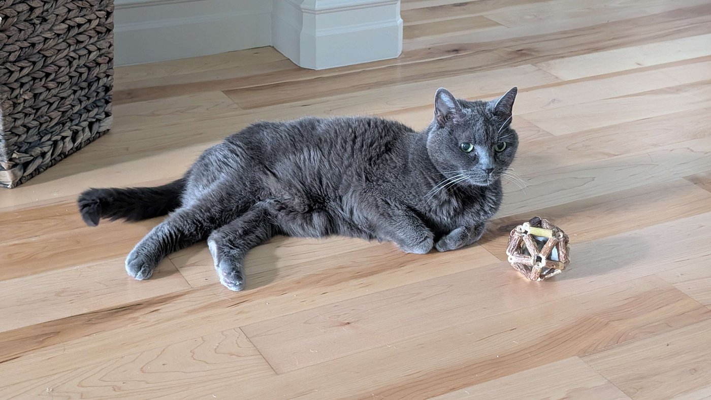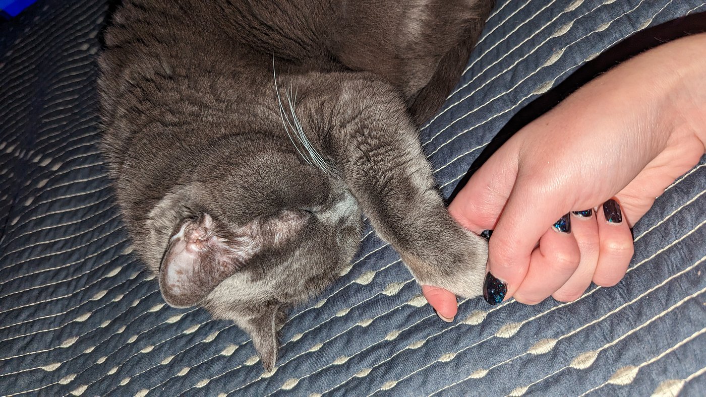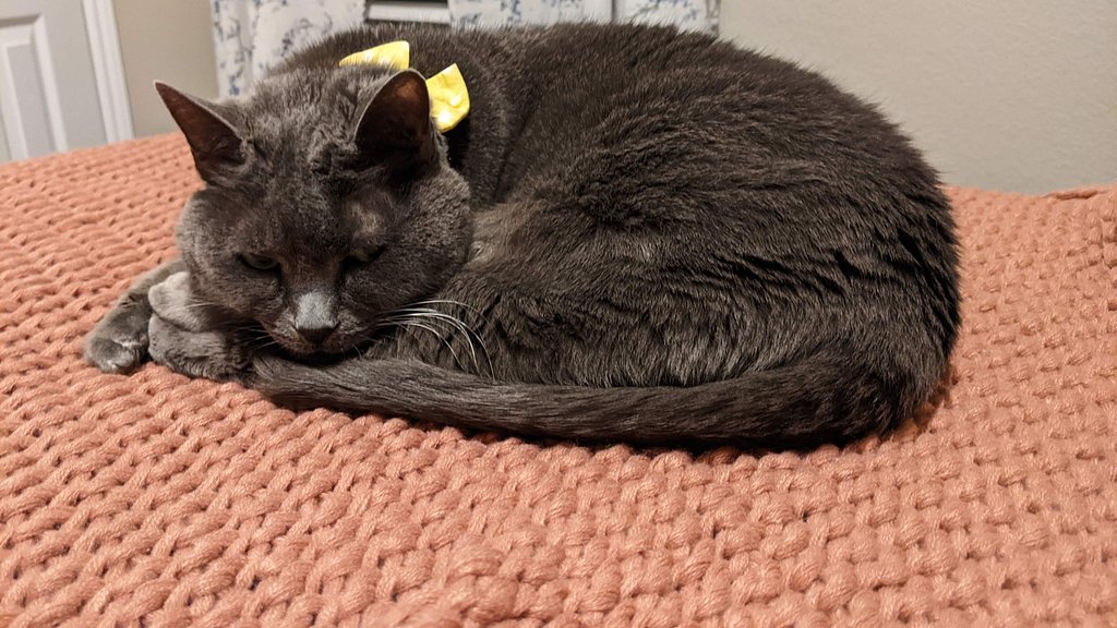 Boo is a Russian blue gray, adopted in 2019 at the age of eleven; she is an old lady but she still has a lot of spunk. She enjoys roasting in the sun all hours of the day, walks in the backyard, & wearing fancy collars like a queen. Better feed her tuna related treats not salmon and if you slip her some ham from a sandwich she’ll be your best friend. However, she will not be friends with other cats. Kora (below) loves every cat and gets too close for Boo’s liking so we keep them separate. During the cool months Boo gets the whole house & stream room privileges during the morning till 5pm central. Then Harry & Kora rule the house in the evening. Boo is very pretty, regal in her movements and pampered beyond comparison. She has a robot litter box, stairs for the bed & office, a water fountain, and automatic feeder. Not to mention about 30 different style collars. This girl was a positive force for me at my darkest moment in 2019/2020 - I love her dearly and will give her the best life she can have.